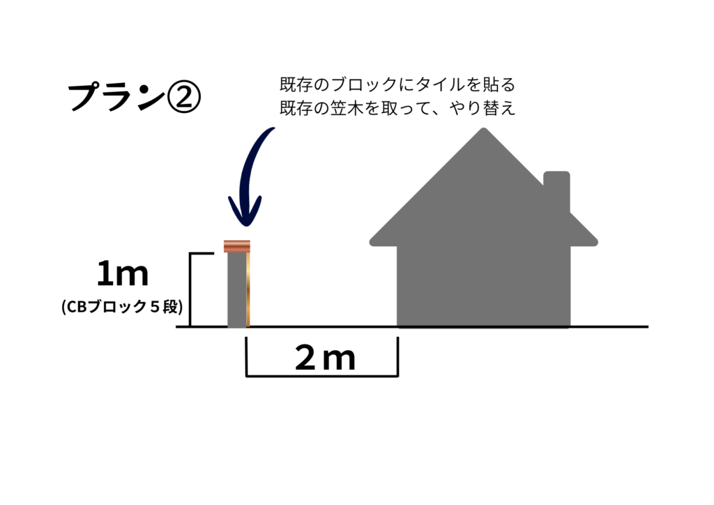 手間と費用、スペースを少しでも無駄にしないために、プラン②のタイルでおしゃれリメイク、で進めることにしました。